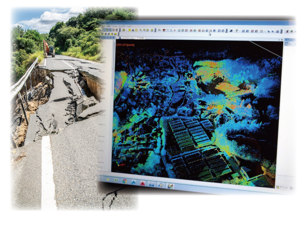 TOPCON 3次元レーザースキャナーを使用し、路面形状計測、ボリューム計測、構造物調査、災害調査などを行います。